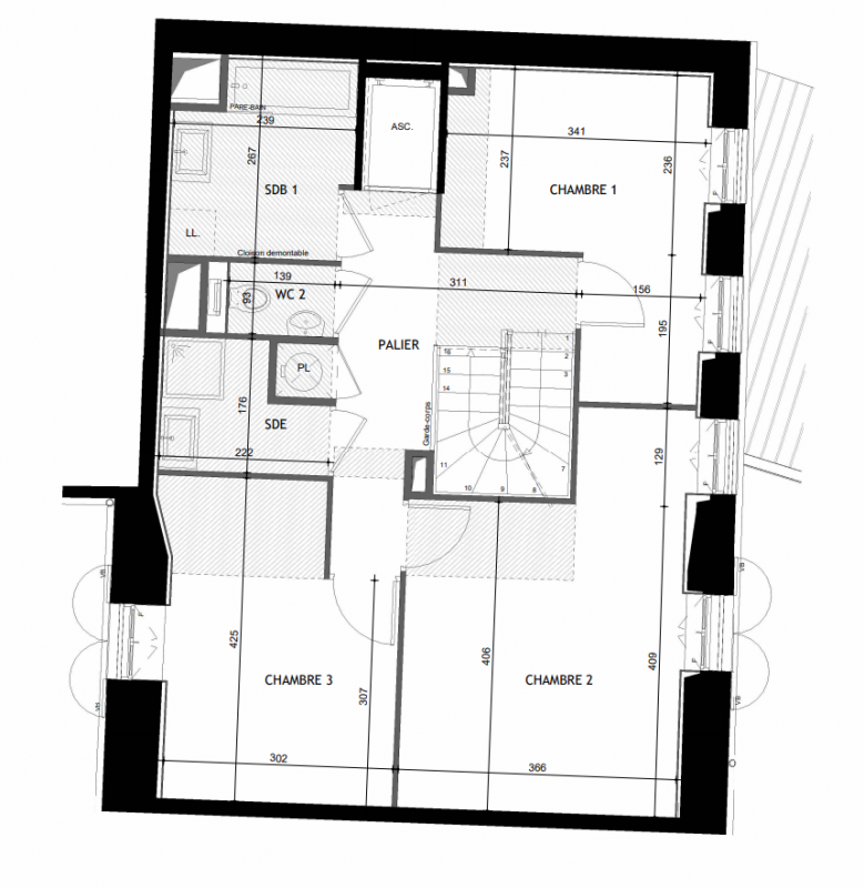Le programme immobilier comprend 26 logements dont 4 maisons de ville (11 logements dans la partie bâtiment historique et 15 appartements dans la partie neuve).