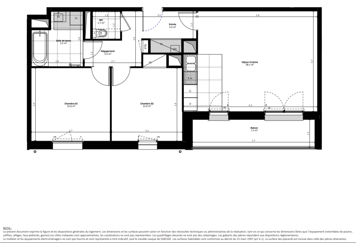 332 900€ Appt. T3 63.6m2 2ème