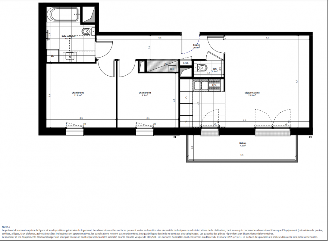 296 300€ Appt. T3 61.5m2
