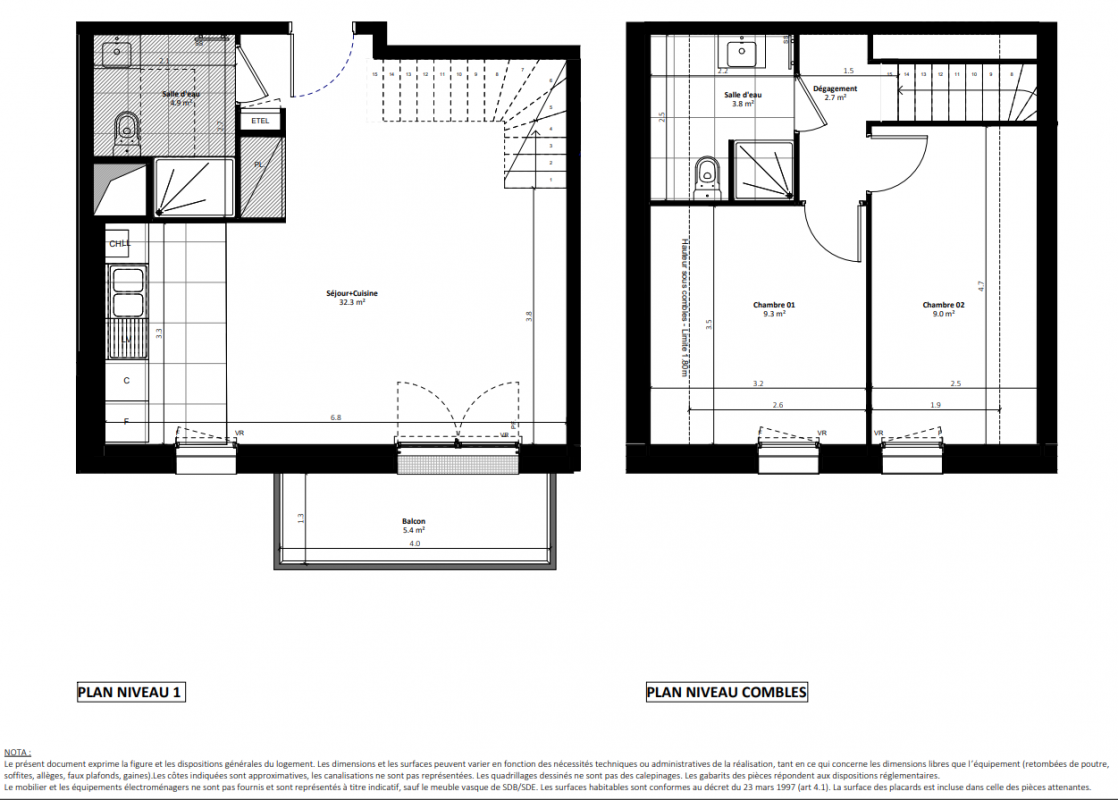 305 800€ Appt. T3 60.7m2 1er