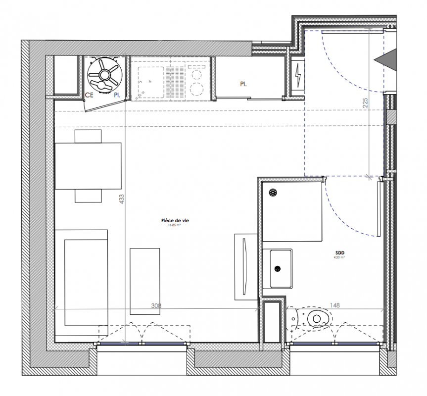 149 000€ Appt. Studio 18.6m2 0-RDC