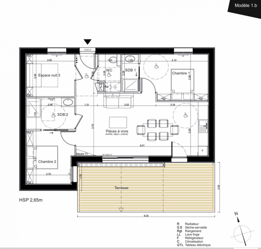 371 057€ Appt. T3 76.1m2 0-RDC