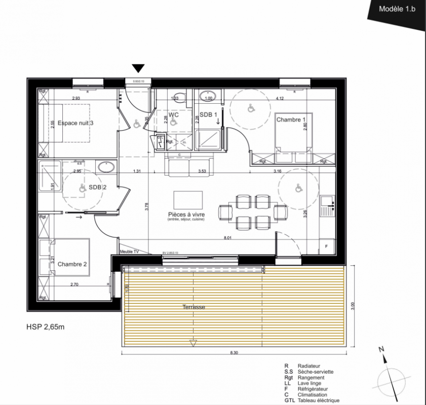 371 057€ Appt. T3 76.1m2 0-RDC
