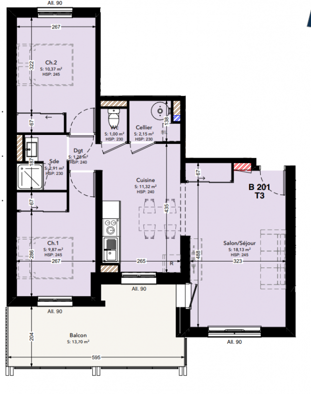 | Voir | Disponible | 273 944€ | 8 | Appt. | T3 | 57m2 | 1er | Disponible | 273 944€ | Voir |
