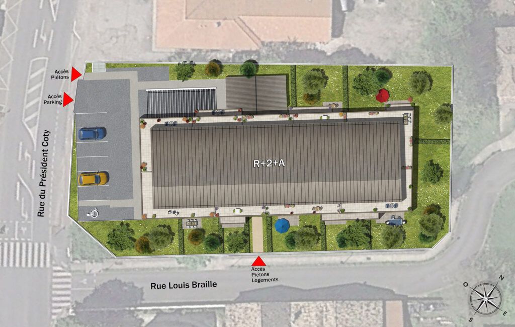 Résidence Le Flore à Saint Vincent de Paul 56 logements répartis sur 2 bâtiments en R+2 et R+2+attique, du T1 au T3 avec terrasse, balcon ou loggia. Stationnement extérieur et abrité. Deu...