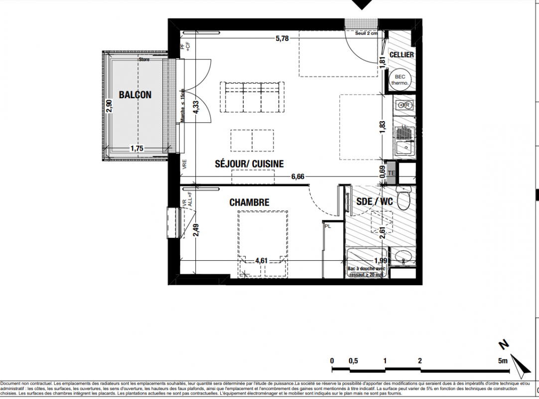 Pièces humides : Carrelage (45x45) avec sous couche acoustique + Faïence à hauteur d’huisserie au pourtour Douche/Baignoire