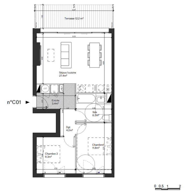 373 800€ Appt. T3 67.4m2 0-RDC