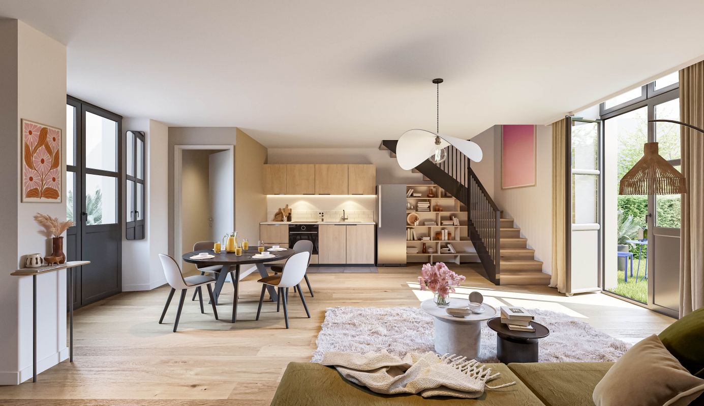 • 9 appartements du 2 au 3 pièces, dont certains en duplex avec mezzanine, pour une surface de vie évolutive ; • 7 maisons familiales de 4 pièces avec jardin privatif, terrasse et agencem...