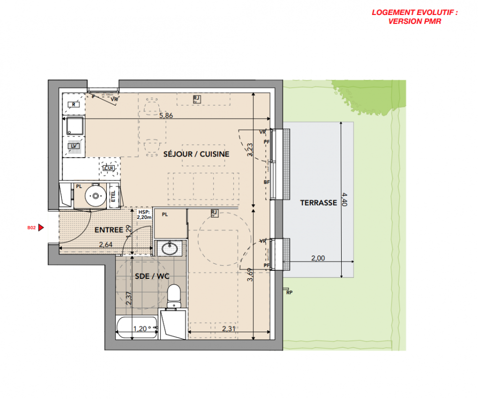 337 000€ Appt. T3 65.63m2 0-RDC