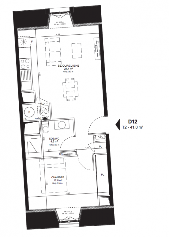 341 700€ Appt. T2 41.8m2 0-RDC