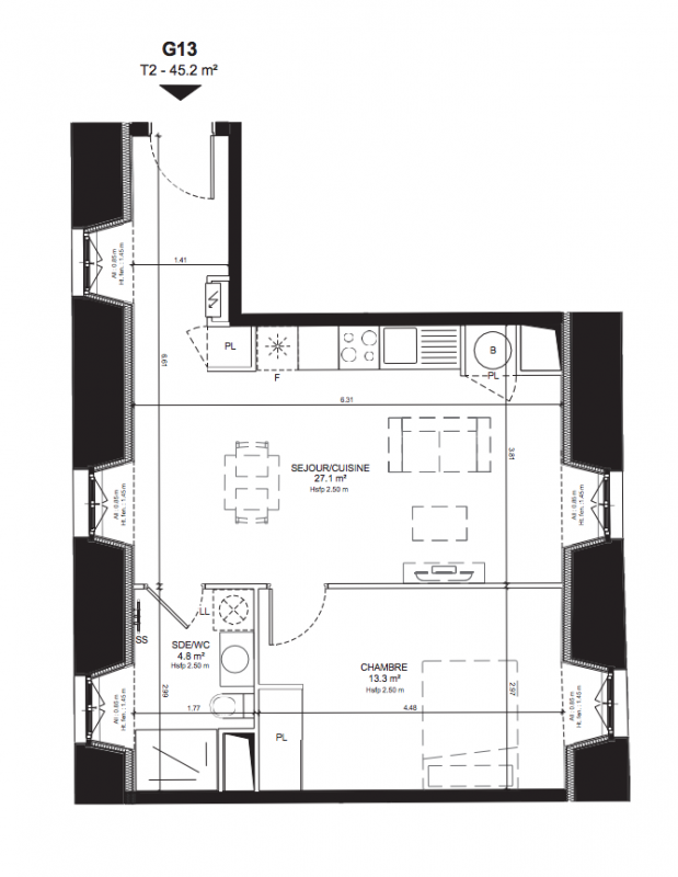| Voir | Disponible | 358 800€ | C13 | Appt. | T2 | 47.5m2 | 1er | Disponible | 358 800€ Prix foncier 24 800€ Prix travaux 334 000€ | Voir |