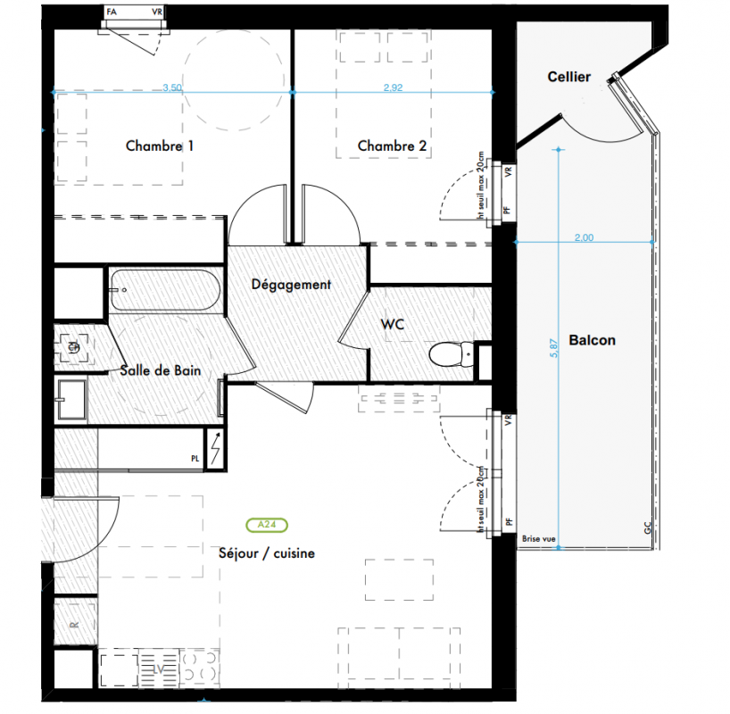302 100€ Appt. T3 60.41m2 0-RDC