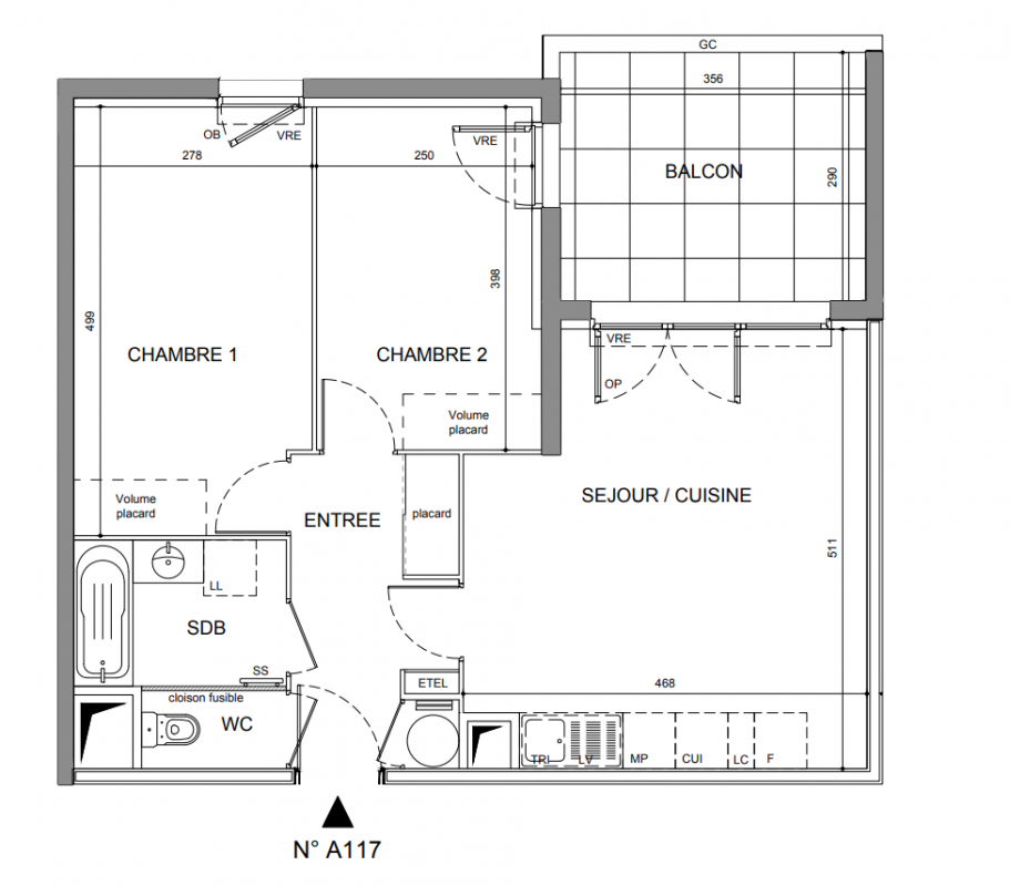 228 000€ Appt. T3 56.98m2 0-RDC