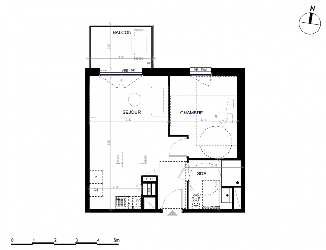212 600€ Appt. T2 42.75m2 1er