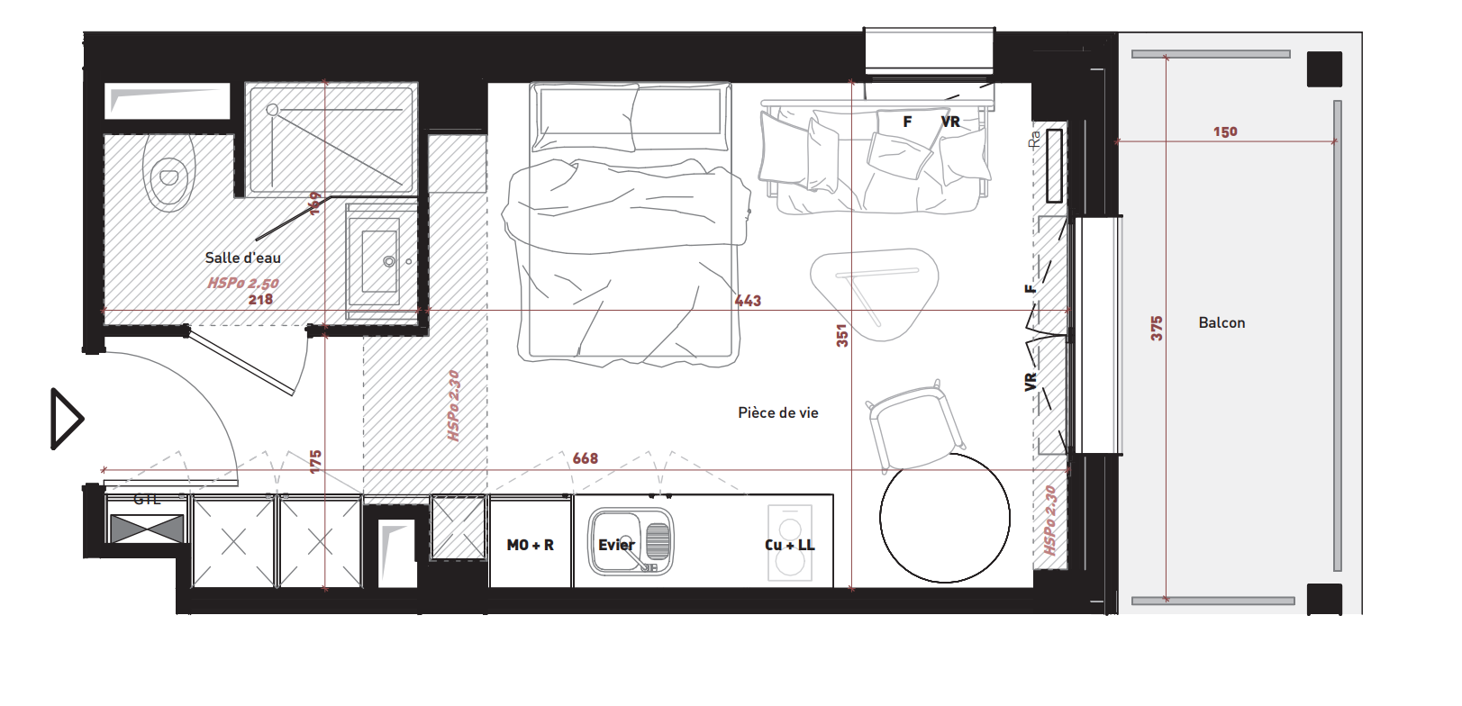 175 277€ Appt. Studio 22.01m2 0-RDC