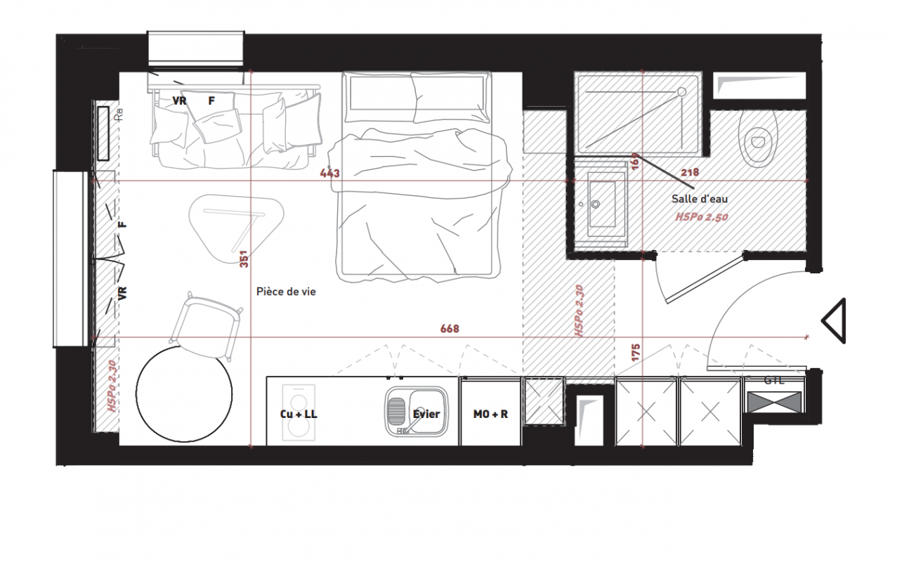 175 277€ Appt. Studio 22.01m2 0-RDC