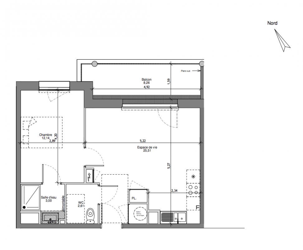 155 500€ Appt. T2 42.19m2 0-RDC
