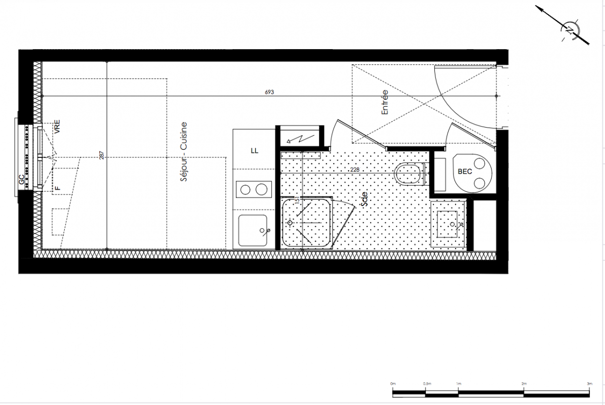 93 300€ Appt. Studio 15.88m2 0-RDC