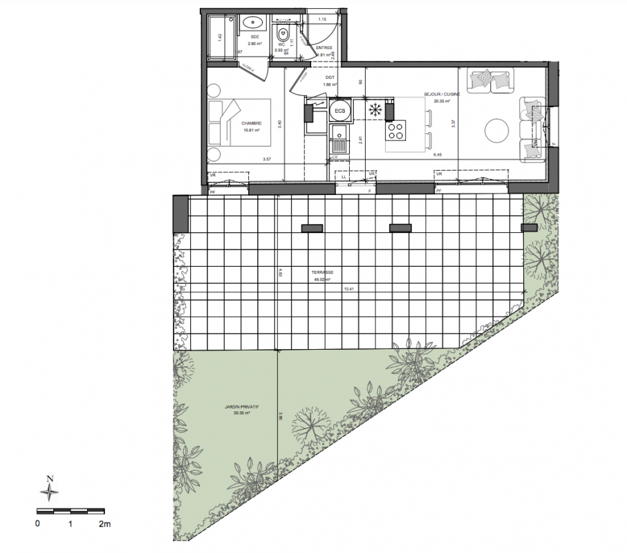 Résidence intimiste de deux bâtiments implantés dans un jardin paysager de 860 m².
