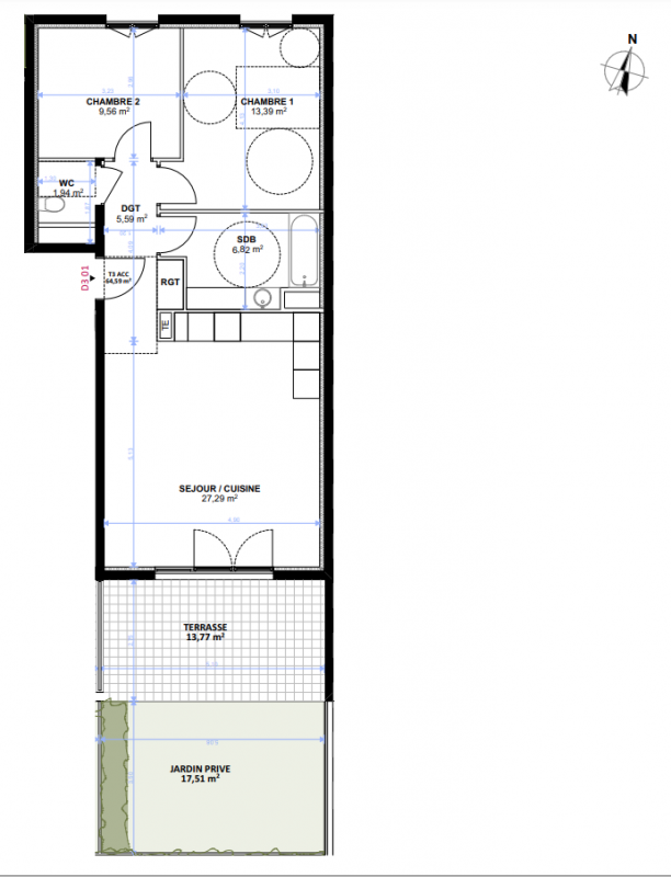 291 560€ Appt. T3 59.94m2 0-RDC