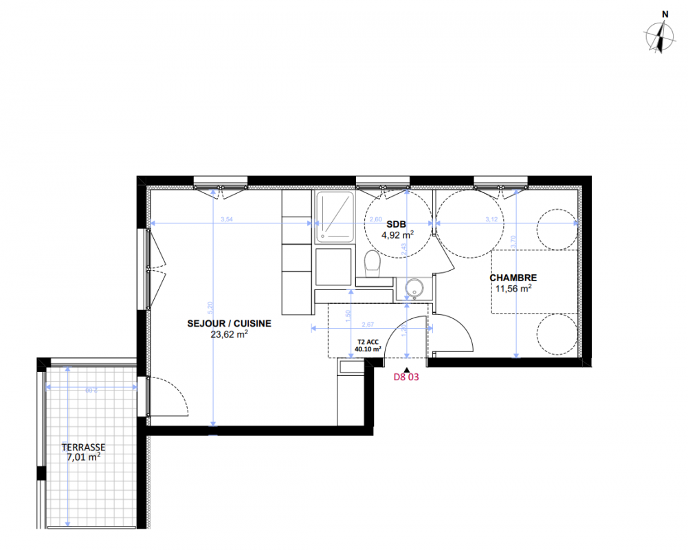 203 181€ Appt. T2 40.1m2 7ème