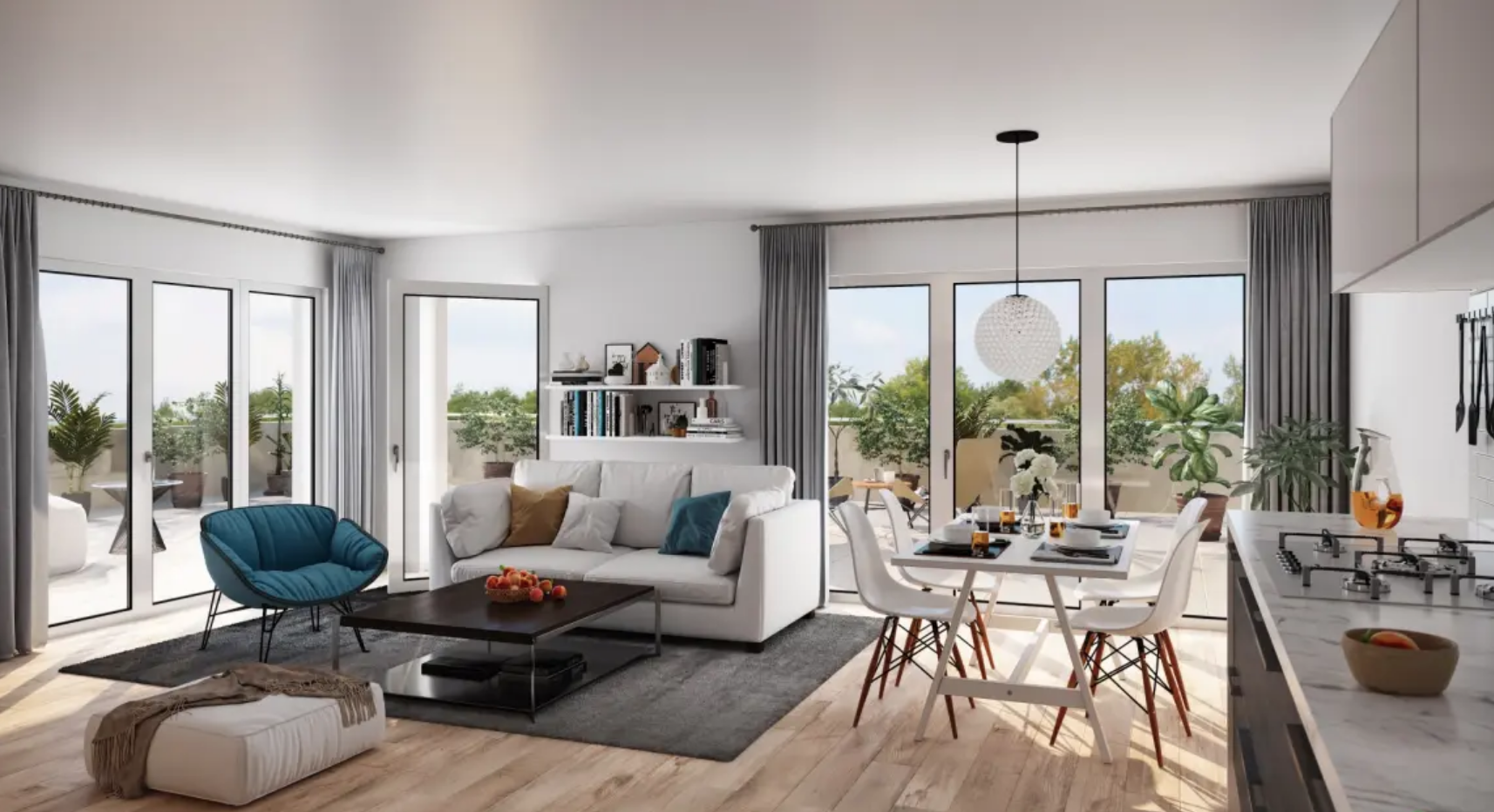 Les appartements offrent des espaces de vie lumineux, avec :