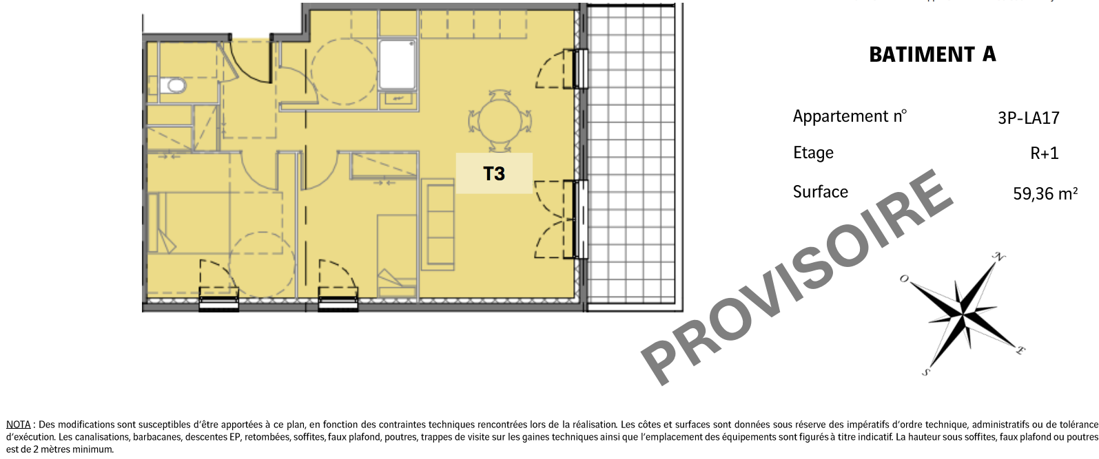 326 400€ Appt. T3 59.36m2